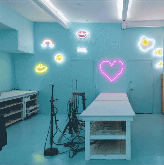We are an artist-led neon design studio offering custom neon, luminescent art objects, creative services and home goods, brought to you with warmth and love.