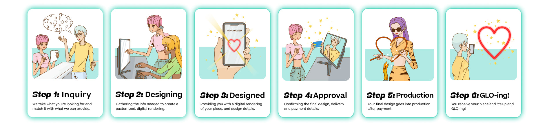 At GLO Studio, we understand that you need more than just a neon sign – you need a partner who can bring your vision to life with ease, reliability, and artistry. The "GLO Guide" is designed to light the way from concept to creation.
