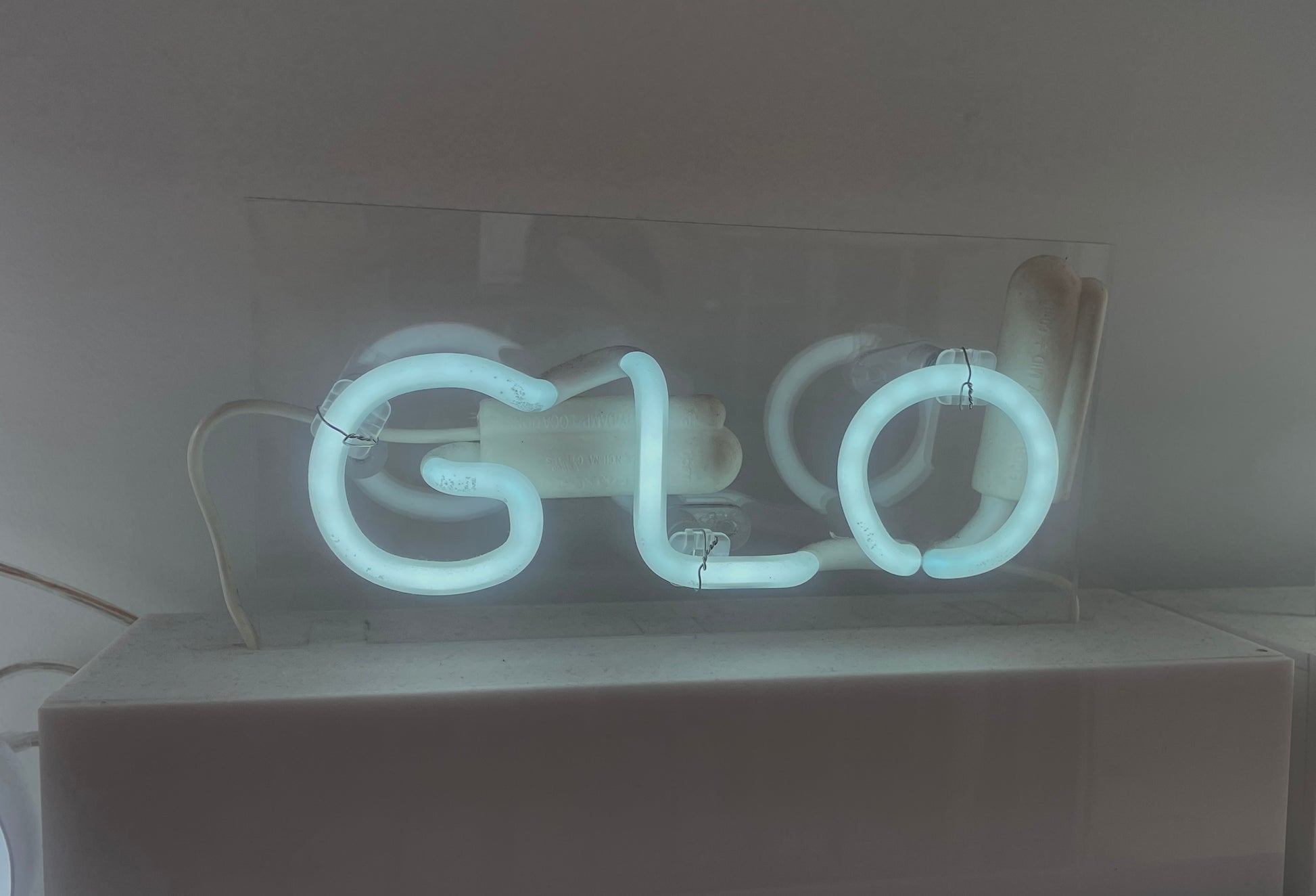 NEON_GLO on wooden box